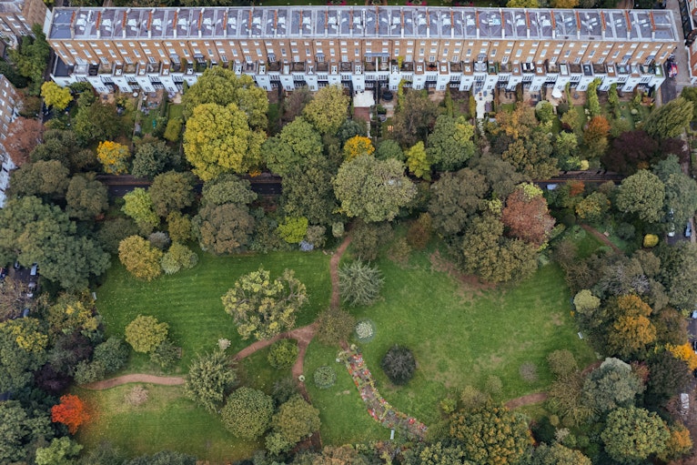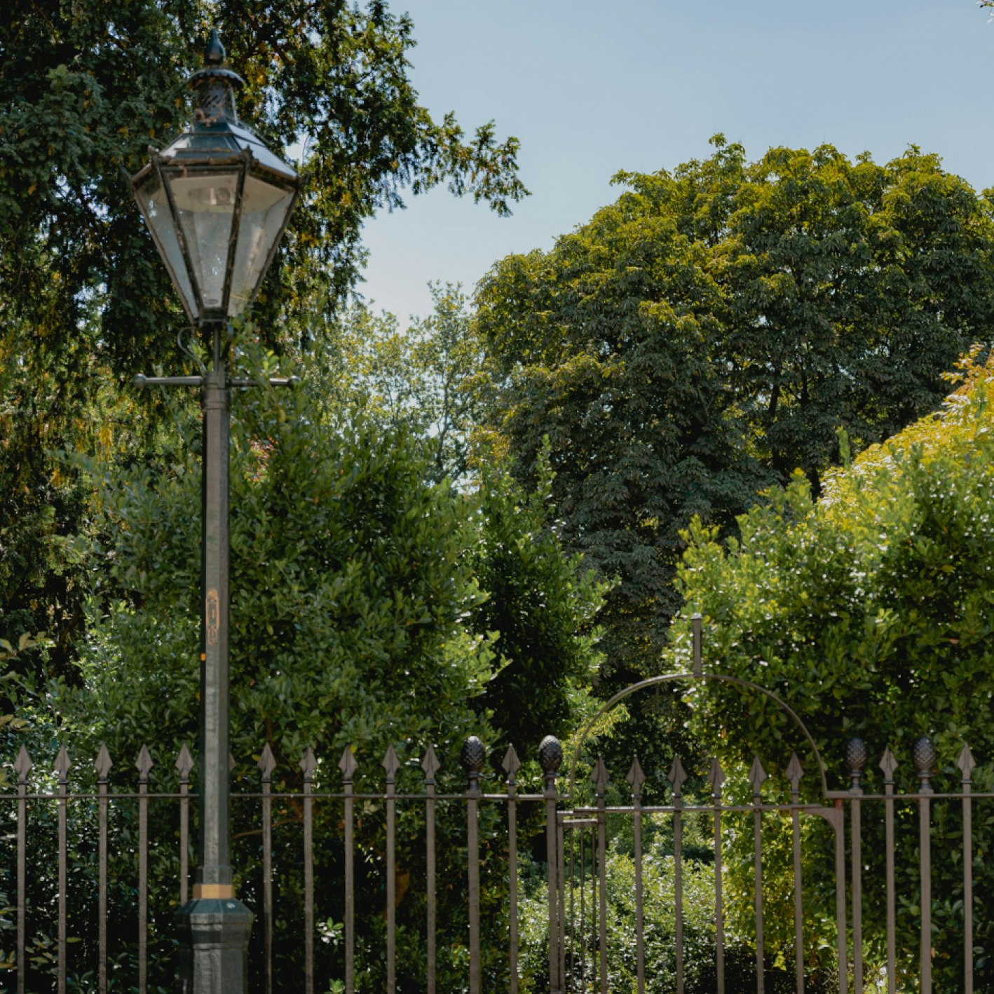 The hidden splendor of Edwardes Square Key Garden was thought to be laid out in 1819 by Mr. Alexander Paul Sack. Flourishing over the years, structures such as the famous Grecian-style Temple, built in 1820, continues to house the Square's primary caretaker & gardener. Residents can still see a war bunker covered with shrubbery and vines that acts as a bike storage for families. Guests can enjoy the Garden's rose pergola including long-standing lilacs, a variety of trees and flowering magnolias, cherry and robinias