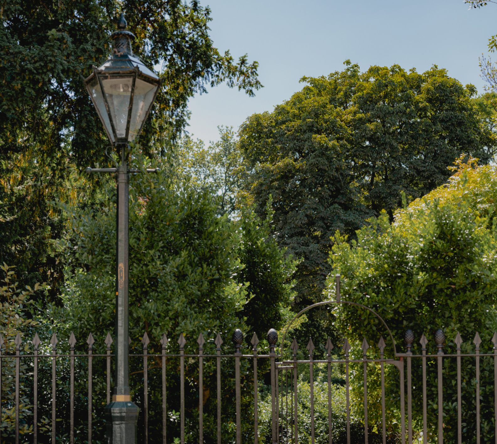 The hidden splendor of Edwardes Square Key Garden was thought to be laid out in 1819 by Mr. Alexander Paul Sack. Flourishing over the years, structures such as the famous Grecian-style Temple, built in 1820, continues to house the Square's primary caretaker & gardener. Residents can still see a war bunker covered with shrubbery and vines that acts as a bike storage for families. Guests can enjoy the Garden's rose pergola including long-standing lilacs, a variety of trees and flowering magnolias, cherry and robinias