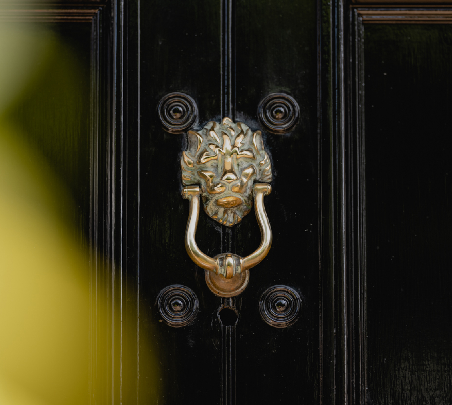 Originally crafted of iron or brass, the lion head motif was an original part of the mouldings and can be seen dotted around the property to this day. Each doorway has a handsome brass lion head knocker to maintain a level of uniformity, whilst also featured neatly across planters on the carriage drive.